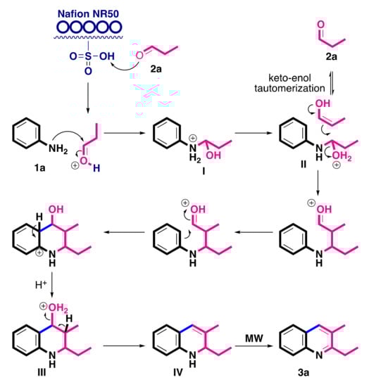 Chicago/Turabian StyleChan, Chieh-Kai, Chien-Yu Lai, and Cheng-Chung Wang. 2021. "Environmentally Friendly Nafion-Catalyzed Synthesis of Substituted 2-Ethyl-3-Methylquinolines from Aniline and Propionaldehyde under Microwave Irradiation" Catalysts 11, no. 8: 877. https://doi.org/10.3390/catal11080877