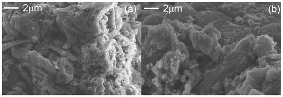 In Figure 2, the selected SEM images of bulk and exfoliated g-C3N4 are presented. The thermal exfoliation transformed the stacked and aggregated structure of bulk g-C3N4 in a porous nanosheet structure. The reduction in layer thickness (Figure 2b) leads to an increase in the specific surface area of g-C3N4 [17,44,45,46].