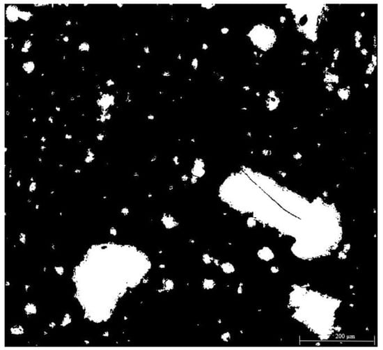 SEM backscatter image converted to binary to calculate an averaged surface area of TiO2.