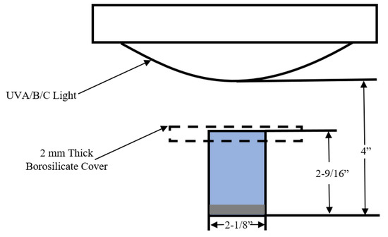 Samples were mixed in transparent borosilicate containers with a diameter of 2-1/8” and height of 2-9/16” for translation to photocatalytic testing described below. (Figure 16). Mixing was performed using hand incorporation of all materials. Each container was vibrated using a vortex mixer set to touch mode for approximately 15 s to remove air and to ensure complete mixing. Samples were then placed in a standard environmental chamber set to 100% humidity, 23 °C, and allowed to cure for 21 days to ensure complete cement hydration. After initial curing was completed, the samples were placed in an environmental chamber maintained at 50% humidity and 23 °C for 7 days to thoroughly dry out prior to testing.