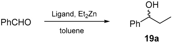 2.6. Asymmetric Addition of Et2Zn to Aldehydes Promoted by Aziridine-Phosphine 6