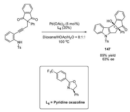 - Chen, J.; Han, X.; Lu, X. Atom-economic synthesis of pentaleno [2, 1-b] indoles via Tandem cyclization of alkynones initiated by aminopalladation. J. Org. Chem. 2017, 82, 1977–1985. [Google Scholar] [CrossRef]