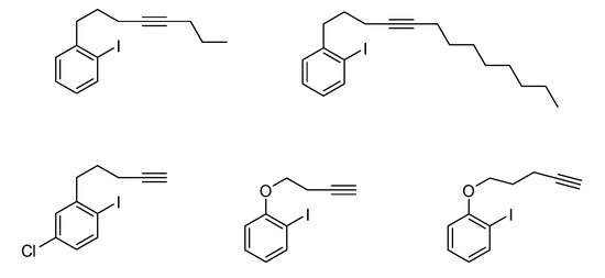 - Wu, W.; Jiang, H. Haloalkynes: A powerful and versatile building block in organic synthesis. Acc. Chem. Res. 2014, 47, 2483–2504. [Google Scholar] [CrossRef] [PubMed]