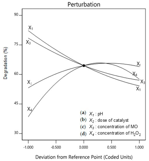 2.6. Optimization for Photocatalytic Degradation of MO Using Response Surface Methodology (RSM)