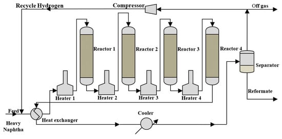 Flow sheet of the semi-regenerative naphtha reforming unit.