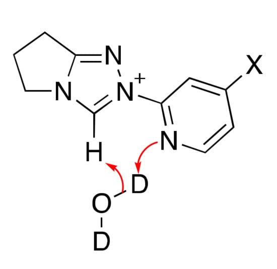 2.1. Kinetic Analysis of the C(3)-H/D Exchange Reactions of N-Pyridyl Triazolium Salts 6 and 7