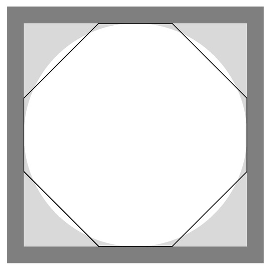 Washcoated channel cross-section showing the circular (light-gray) and octo-square (solid black line) approximations for the washcoat deposition.