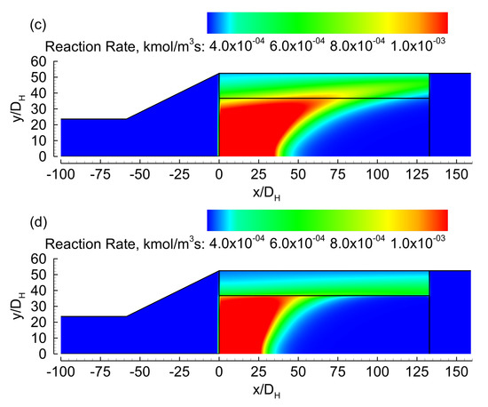 Reaction rate. (a) 400c/400r, (b) 400c/900r, (c) 900c/900r, and (d) 900c/400r.