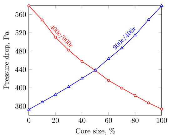 Pressure drop as a function of the core size.