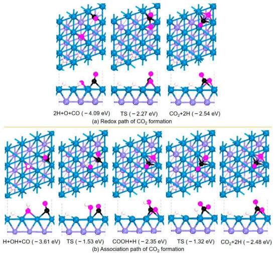 2.1. The Processes of H2O Dissociation and CO2 Formation