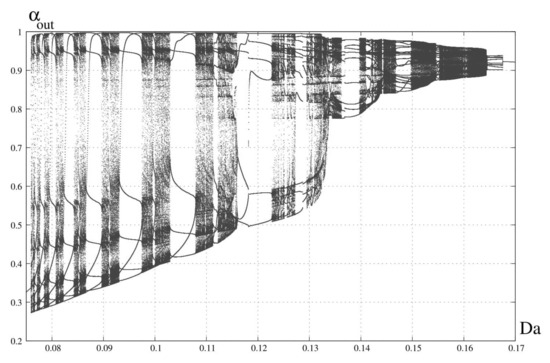 - Merta, H.; Pelka, R. Chaotic dynamics of a cascade of plug flow tubular reactors (PFTRs) with division of recirculating stream. Chaos Solitons Fractals 2005, 23, 1211–1219. [Google Scholar] [CrossRef]