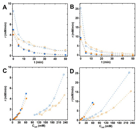 - Wojtusik, M.; Yepes, C.M.; Villar, J.C.; Cordes, A.; Arroyo, M.; Garcia-Ochoa, F.; Ladero, M. Kinetic Modeling of Cellobiose by a β-Glucosidase from Aspergillus Fumigatus. Chem. Eng. Res. Des. 2018, 136, 502–512. [Google Scholar] [CrossRef]