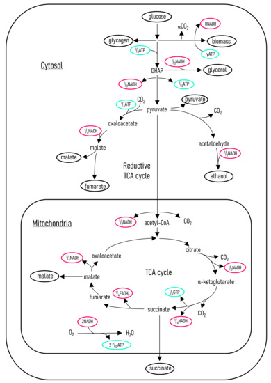 3.6. Metabolic Flux Model and Energy Calculations