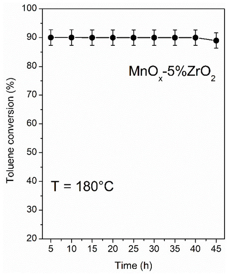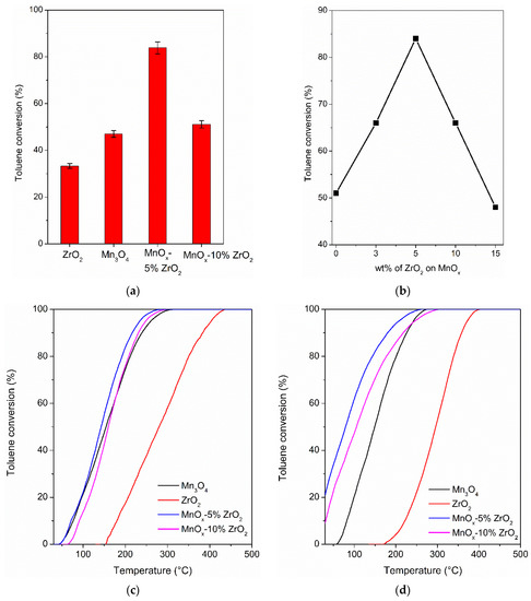 - Huang, X.; Li, L.; Liu, R.; Li, H.; Lan, L.; Zhou, W. Optimized synthesis routes of MnOx-ZrO2 hybrid catalysts for improved toluene combustion. Catalysts 2021, 11, 1037. [Google Scholar] [CrossRef]