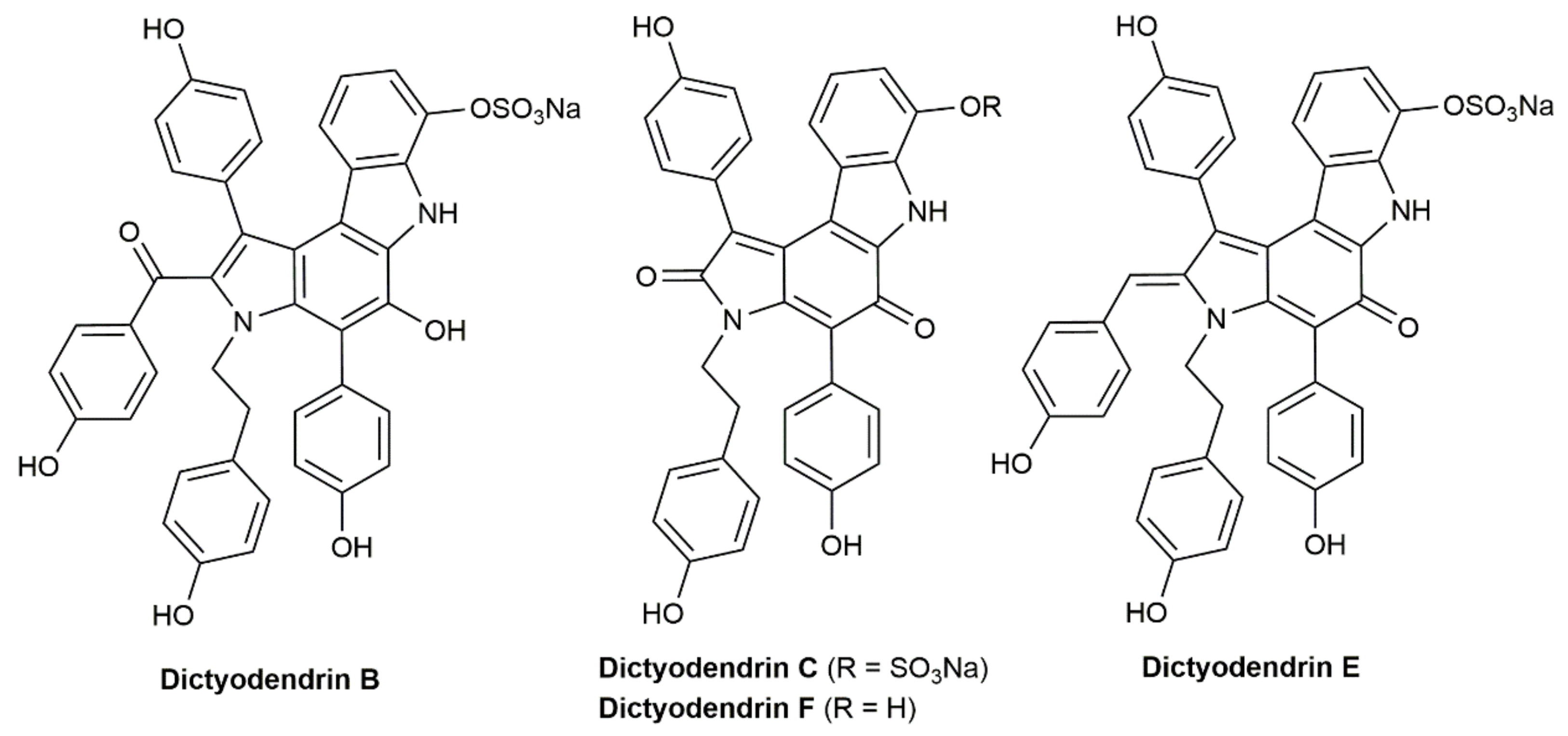 - Matsuoka, J.; Matsuda, Y.; Kawada, Y.; Oishi, S.; Ohno, H. Total synthesis of dictyodendrins by the gold-catalyzed cascade cyclization of conjugated diynes and pyrroles. Angew. Chem. Int. Ed. 2017, 56, 7444–7448. [Google Scholar] [CrossRef] [PubMed]