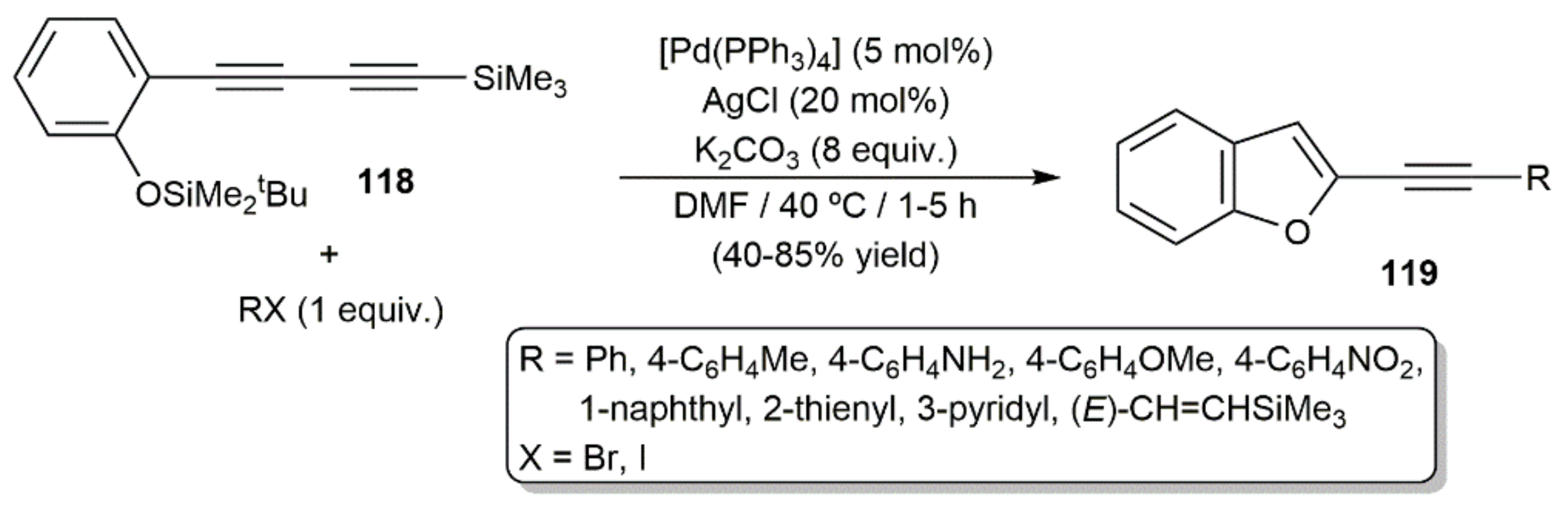 - Nizami, T.A.; Hua, R. Cycloaddition of 1,3-butadiynes: Efficient synthesis of carbo- and heterocycles. Molecules 2014, 19, 13788–13802. [Google Scholar] [CrossRef] [PubMed]