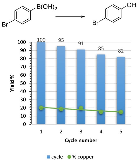 - Dar, B.A.; Bhatti, P.; Singh, A.P.; Lazar, A.; Sharma, P.R.; Sharma, M.; Singh, B. Clay entrapped Cu(OH)x as an efficient heterogeneous catalyst for ipso-hydroxylation of arylboronic acids. Appl. Catal. A 2013, 466, 60–67. [Google Scholar] [CrossRef]