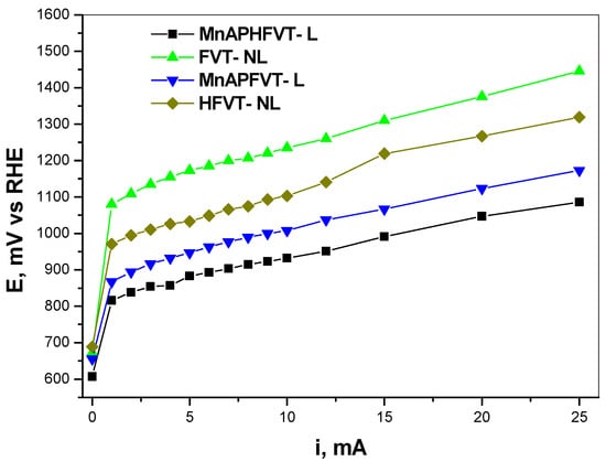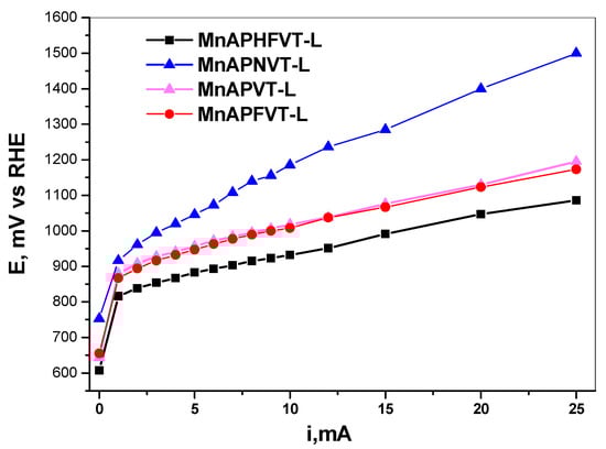 2.8. Dependence of the Anode Potential with Time at a Constant Current Density