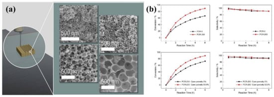 Early in 2004, Stuecker and coworkers fabricated a ceramic lattice with complex internal structure for the supporting of barium manganese hexaaluminate []. It was demonstrated that by tailoring the structure of the support into FCC lattice structure, turbulent flow of gases can be achieved and catalytic performance is highly enhanced. Agustín’s group also proved the favorable turbulent of gases by fabricating asymmetrical channels within the honeycomb-like supports via 3D printing technology, after loading of Cu/Ceria active phase, the products showed better catalytic performance for preferential CO oxidation in H2-rich mixtures b [].
