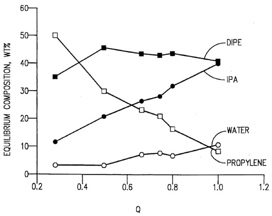 - Bel, W.K.; Brown, S.H.; Trewella, J.C. Multistage Indirect Propylene Hydration Process for the Production of Diisopropyl Ether and Isopropanol. U.S. Patent US5569789, 2 August 1995. Assigned to Mobil Oil Corporation. Available online: https://worldwide.espacenet.com/patent/search/family/023365922/publication/US5569789A?q=US5569789 (accessed on 10 August 2022).