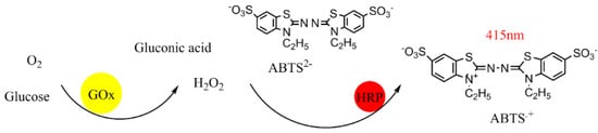 A sensitive color-rendering reaction was used for a high-throughput screen, and the schematic diagram is shown in Figure 10. Glucose can be oxidized to glucose acid and hydrogen peroxide by Gox. Adding a HRP reaction generates free radicals. ABTS appears blue in the presence of free radicals, and it has a linear absorbance with a concentration of 415 nm. GOX competes for all glucose in an extremely short time to terminate the reaction. This method enables the sensitive and rapid detection of the remaining glucose content in the reaction system.