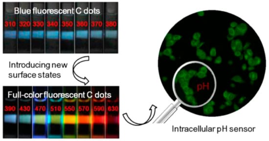 The integration of carbon dots with different adjusted full-color emission and pH sensors. Reprinted with permission from Ref. [34]. (Copyright, 2014 ACS).
