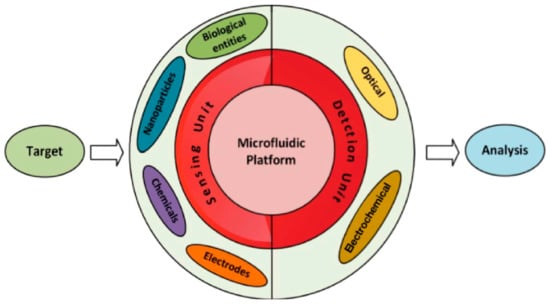 - Liao, Z.; Wang, J.; Zhang, P.; Zhang, Y.; Miao, Y.; Gao, S.; Deng, Y.; Geng, L. Recent advances in microfluidic chip integrated electronic biosensors for multiplexed detection. Biosens. Bioelectron. 2018, 121, 272–280. [Google Scholar] [CrossRef] [PubMed]