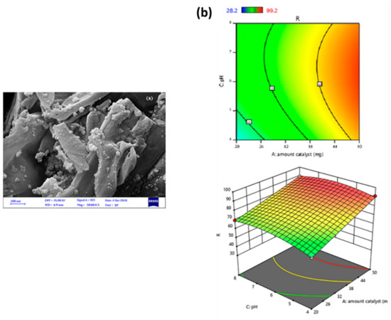 - Merci, S.; Saljooqi, A.; Shamspur, T.; Mostafavi, A. Investigation of photocatalytic chlorpyrifos degradation by a new silica mesoporous material immobilized by WS2 and Fe3O4 nanoparticles: Application of response surface methodology. Appl. Organomet. Chem. 2020, 34, e5343. [Google Scholar] [CrossRef]