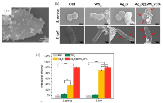 - Lin, Y.; Han, D.; Li, Y.; Tan, L.; Liu, X.; Cui, Z.; Yang, X.; Li, Z.; Liang, Y.; Zhu, S.; et al. Ag2S@WS2 Heterostructure for Rapid Bacteria-Killing Using Near-Infrared Light. ACS Sustain. Chem. Eng. 2019, 7, 14982–14990. [Google Scholar] [CrossRef]