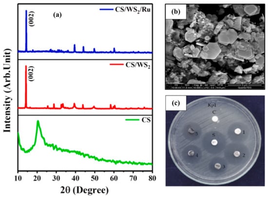 - Kasinathan, K.; Marimuthu, K.; Murugesan, B.; Sathaiah, M.; Subramanian, P.; Sivakumar, P.; Swaminathan, U.; Subbiah, R. Fabrication of eco-friendly chitosan functionalized few-layered WS2 nanocomposite implanted with ruthenium nanoparticles for in vitro antibacterial and anticancer activity: Synthesis, characterization, and pharmaceutical applications. Int. J. Biol. Macromol. 2021, 190, 520–532. [Google Scholar] [CrossRef]