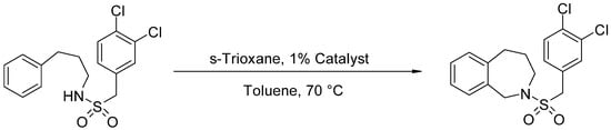 The most suitable catalyst was identified using the test reaction between N-phenylpropyl-3,4-dichlorobenzylsulfonamide and s-trioxane as substrate (see Scheme 1), with toluene as solvent, at 70 °C for 3 h to obtain N-(3,4-dichlorobenzylsulfonyl)-2,3,4,5-tetrahydro-1H-benzo[c]azepine.