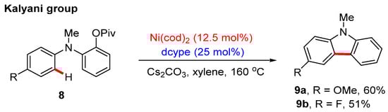 - Wang, J.Y.; Ferguson, D.M.; Kalyani, D. Nickel-catalyzed intramolecular C–H arylation using aryl pivalates as electrophiles. Tetrahedron 2013, 69, 5780–5790. [Google Scholar] [CrossRef]