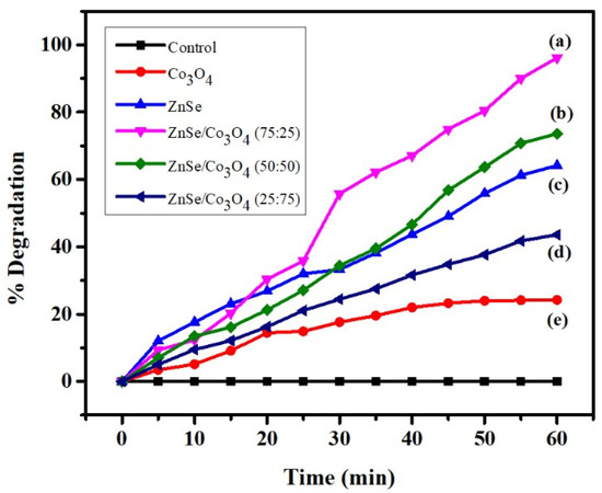 Zia, A.; Naveed, A.B.; Javaid, A.; Ehsan, M.F.; Mahmood, A. Facile Synthesis of ZnSe/Co3O4 Heterostructure Nanocomposites for the Photocatalytic Degradation of Congo Red Dye. Catalysts 2022, 12, 1184. https://doi.org/10.3390/catal12101184