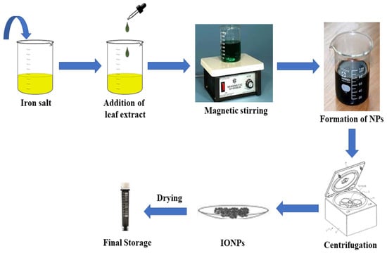 A green approach has received much attention for synthesizing metal oxide nanoparticles because of its convenience of use and underlying safety [9]. IONPs have sparked much interest recently, as they can be quickly recovered from reaction mixtures by applying an external magnetic field. Although many chemical and physical synthesis methods are known, green synthesis is safer, more sustainable, and biologically acceptable. The primary biological materials used in the green synthesis are plants and microbes. Additionally, these biomaterials play the role of stabilizing, reducing, capping, and fabricating agents in the green synthesis of nanoparticles [10].