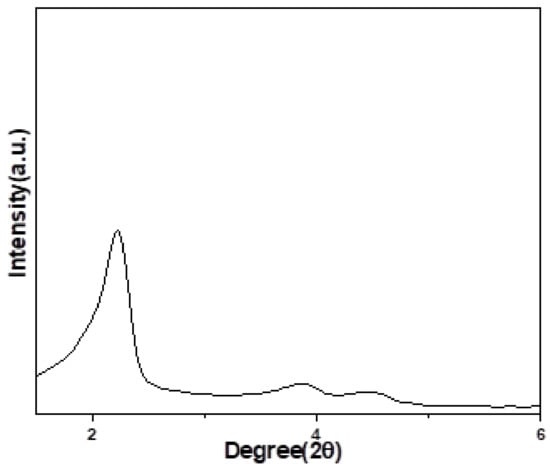 Figure 4 represents the XRD pattern of the reused catalyst after the fourth cycle. This image demonstrates that the 12.8 A-MCM-41-S catalyst retained its well-defined ordered mesoporous structure.