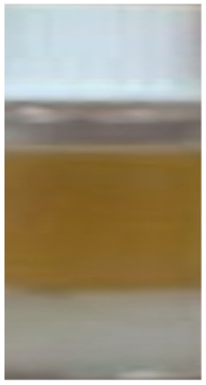 As a result, there were two main sources of adsorbed oxygen: first, polluted molecular oxygen from the gas phase, and second, the CO dissociation product. Fe5C2 was formed during the reduction reaction, which is considered the most active phase of the process [38,39]. Furthermore, the use of activated carbon increased the catalytically active phase’s anchoring. The samples from the separators were collected in glass vials and sealed to prevent evaporation after the reaction. The lower white layer in Figure 7, which is oxygenated, and the higher brown layer, which contains C5+ hydrocarbons, were separated in the collected samples. Figure 8 depicts the results, which show various peaks and all potential chemicals included in the product. The overall percentage of different hydrocarbons in the mixture is shown in Table 3.