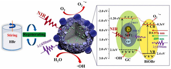 - Li, G.; Huang, S.; Li, K.; Zhu, N.; Zhao, B.; Zhong, Q.; Zhang, Z.; Ge, D.; Wang, D. Near-infrared responsive Z-scheme heterojunction with strong stability and ultra-high quantum efficiency constructed by lanthanide-doped glass. Appl. Catal. B Environ. 2022, 311, 121363. [Google Scholar] [CrossRef]