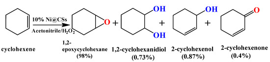 Reaction scheme of the catalytic epoxidation of cyclohexene 10% Ni@CSs.