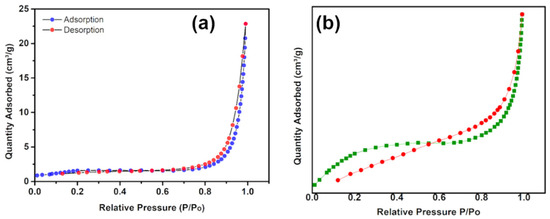 (a) Nitrogen linear adsorption isotherm of BFO and (b) nitrogen linear adsorption isotherm of CBB.