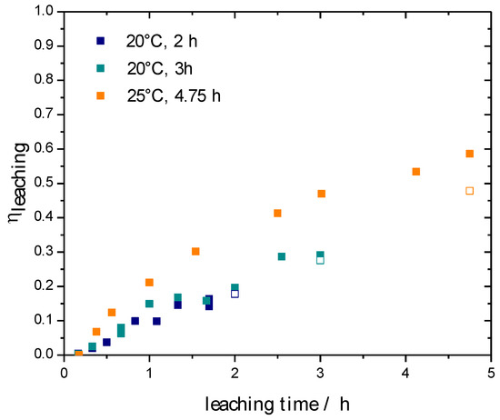 The leaching progress is described by the leaching efficiency, which is determined by the remaining aluminum content as calculated via Equation (2).