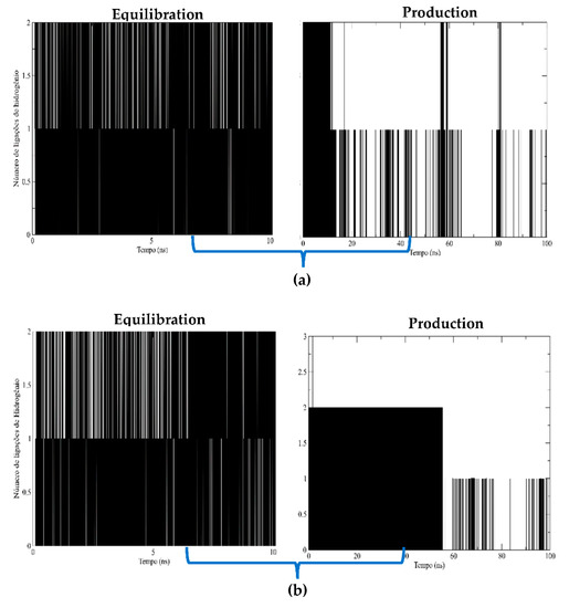 Another analysis refers to the number of intermolecular hydrogen bonds since these bonds are of great importance for the stability of the complex. Figure 6 shows the hydrogen bonds formed between the ligands and the lipase in the equilibration and production steps.
