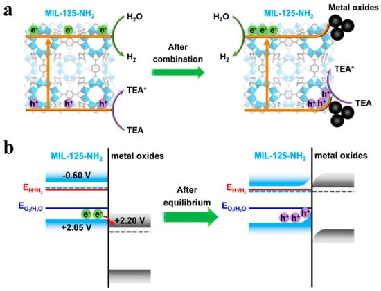 - Zhang, C.; Xie, C.; Gao, Y.; Tao, X.; Ding, C.; Fan, F.; Jiang, H. Charge Separation by Creating Band Bending in Metal-Organic Frameworks for Improved Photocatalytic Hydrogen Evolution. Angew. Chem. Int. Ed. 2022, 61, e202204108. [Google Scholar]