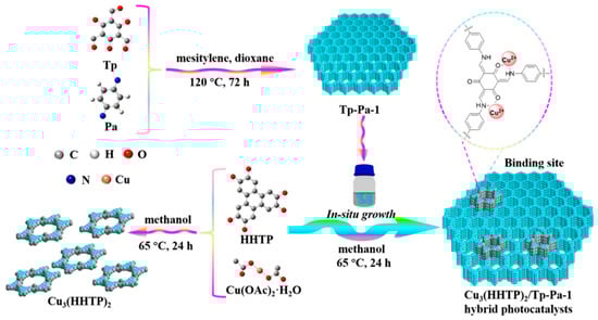 - Xue, P.; Pan, X.; Huang, J.; Gao, Y.; Guo, W.; Li, J.; Tang, M.; Wang, Z. In Situ Fabrication of Porous MOF/COF Hybrid Photocatalysts for Visible-Light-Driven Hydrogen Evolution. ACS Appl. Mater. Interfaces 2021, 13, 59915–59924. [Google Scholar] [CrossRef]