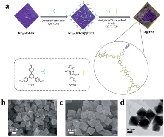 - Sun, D.; Jang, S.; Yim, S.; Ye, L.; Kim, D. Metal Doped Core–Shell Metal-Organic Frameworks@ Covalent Organic Frameworks (MOFs@COFs) Hybrids as a Novel Photocatalytic Platform. Adv. Funct. Mater. 2018, 28, 1707110. [Google Scholar] [CrossRef]