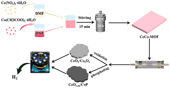 - Li, T.; Zhang, L.; Li, X.; Wang, X.; Jin, Z. Design and synthesis of phosphating bimetallic CeCo-MOF for substantially improved photocatalytic hydrogen evolution. J. Mater. Chem. C 2022, 10, 8750. [Google Scholar] [CrossRef]