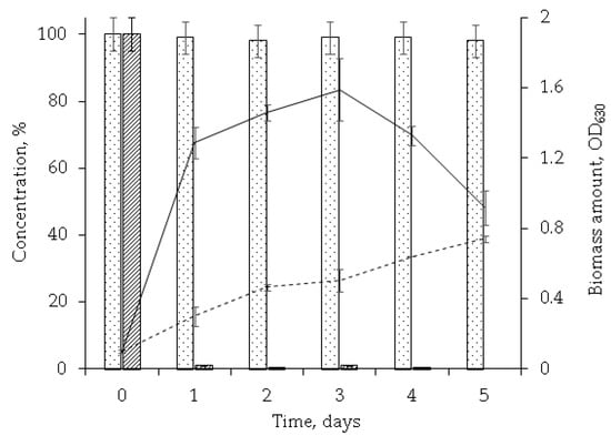 An inoculated medium with yeast extract (0.1 g/L, FBIS SRCAMB, Obolensk, Russia) was used as a biotic control. Non-inoculated medium with OA was used as an abiotic control.