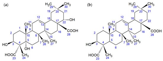 Structural formulas of the OA metabolite (a) and gypsogenic acid (b).
