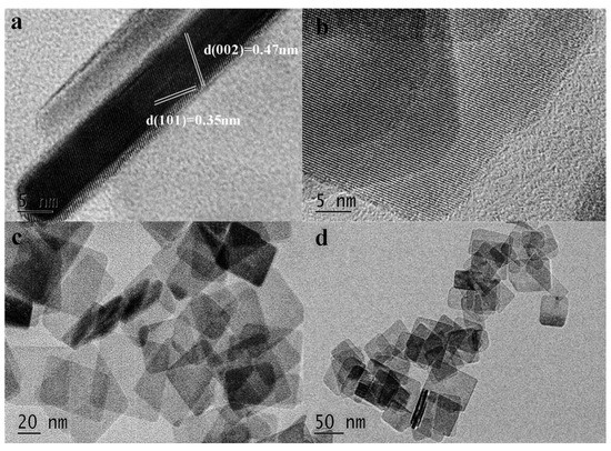 - Xiao, H.Y.; Zhen, L.; Sun, C.; Hua, G.Y.; Li, C. Hydrothermal Stability of {001} Faceted Anatase TiO2. Chem. Mater. 2011, 23, 3486–3494. [Google Scholar]