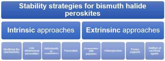 Current strategies proposed to increase the stability of bismuth halide perovskites.