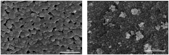 SEM images of Aged FlYZr (a), SpYZr (b), ReYZr (c), and BuYZr (d).